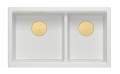 Zestaw zawiera zlewozmywak podwieszany LOGAN 120 GraniteQ SNOW WHITE + nakładka na odpływ + syfon save space z odpływem 3,5" SteelQ PVD złoty