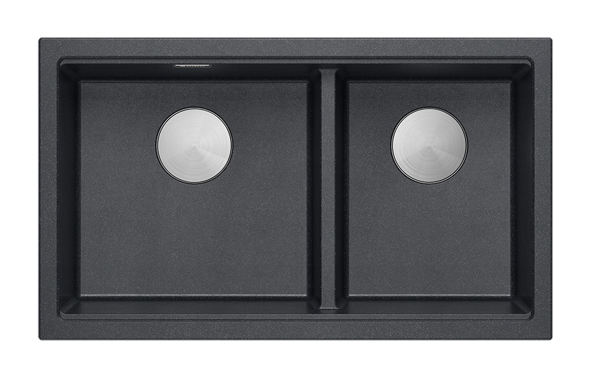Zestaw zawiera zlewozmywak wpuszczany LOGAN 120 GraniteQ BLACK DIAMOND + stalowa nakładka + syfon save space z odpływem 3,5" SteelQ stalowy