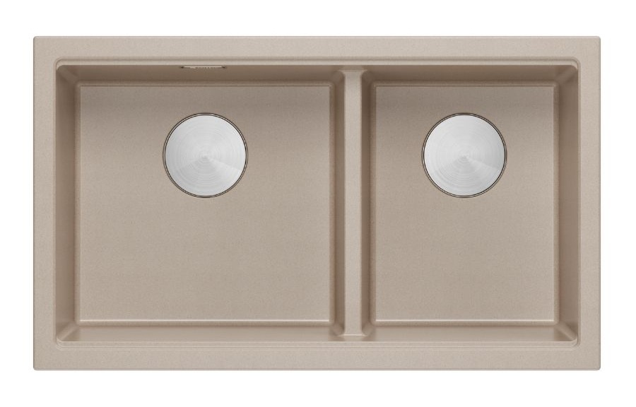 Zestaw zawiera zlewozmywak wpuszczany LOGAN 120 GraniteQ PEARL BEIGE (perłowy beż) + stalowa nakładka + syfon save space z odpływem 3,5" SteelQ stalowy