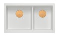 Zestaw zawiera zlewozmywak wpuszczany LOGAN 120 GraniteQ SNOW WHITE + nakładka na odpływ + syfon save space z odpływem 3,5" SteelQ PVD miedziany