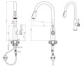 Zestaw zawiera zlewozmywak MORGAN 110 GraniteQ PURE CARBON + bateria kuchenna JESSICA Q LINE z wyciąganą wylewką i funkcją prysznica + syfon Push-2-Open save space z odpływem 3,5" SteelQ PVD miedziany
