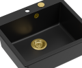 Zestaw zawiera zlewozmywak MORGAN 110 GraniteQ PURE CARBON + bateria kuchenna RACHEL + syfon Push-2-Open save space z odpływem 3,5" SteelQ PVD złoty