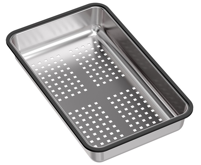 Wkładka ociekowa to kolejny przedmiot, który ułatwia nam pracę i znakomicie wpasowuje się w desing kuchni. Wykonana została ze stali nierdzewnej, co sprawia, że jest odporna na uszkodzenia mechaniczne i trudne warunki użytkowania. Solidna konstrukcja, zabezpieczona wygodnymi uchwytami z tworzywa pozwalają na utrzymaniu wkładki w czystości oraz ułatwiają jej przesuwanie i zapobiegają powstawaniu zarysowań. Wkładka ociekowa będzie stanowiła nie tylko praktyczny dodatek, uzupełnienie zlewozmywaka ale również wzbogaci aranżację naszej kuchni.