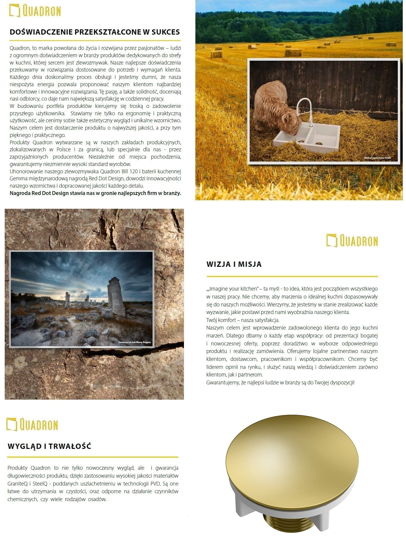 Zaślepka ze stali szlachetnej PVD w kolorze złotym. Idealnie pasuje do zlewozmywaka granitowego, stalowego, ceramicznego, szklanego.