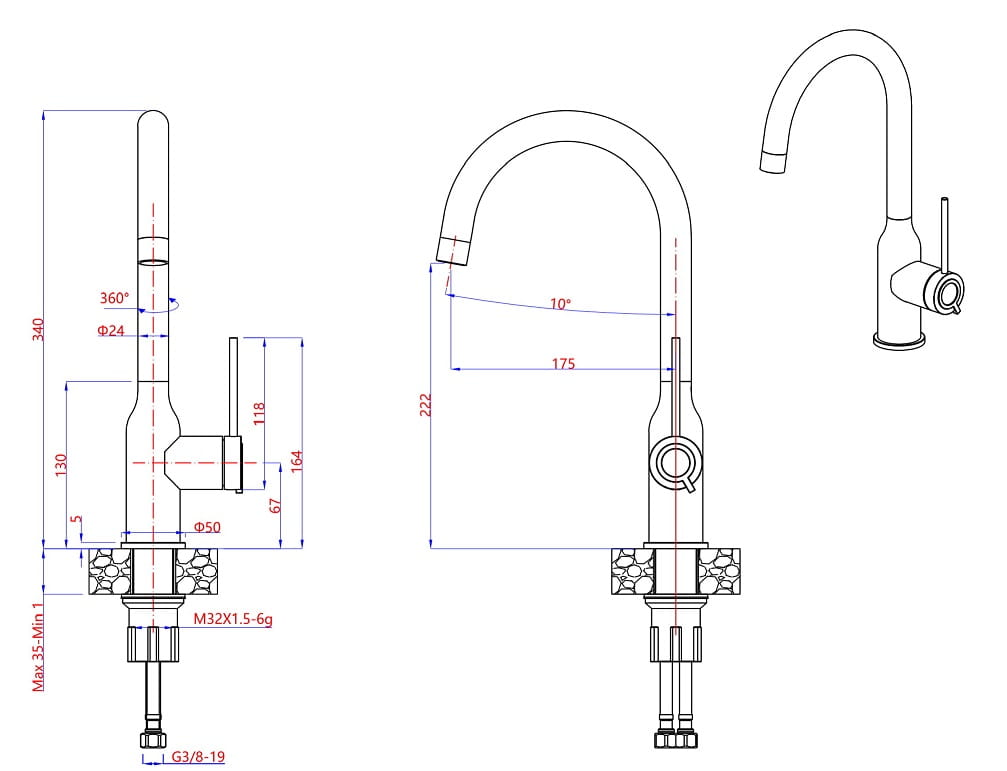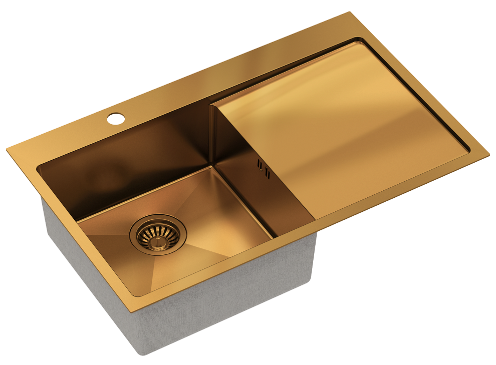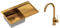 Zestaw zawiera zlewozmywak stalowy RUSSEL 111 MIEDZIANY + bateria kuchenna INGRID Q LINE + syfon z odpływem 3,5"