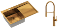 Zestaw zawiera zlewozmywak stalowy RUSSEL 111 MIEDZIANY + bateria kuchenna MARILYN Q LINE z ruchomą wylewką + syfon save space z odpływem 3,5"