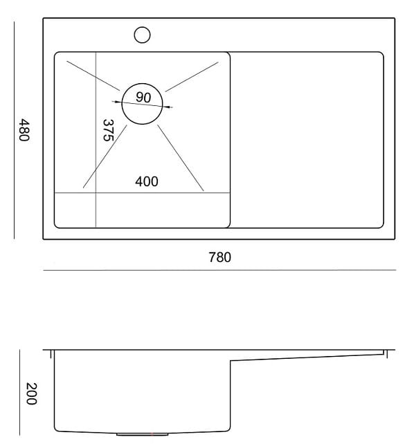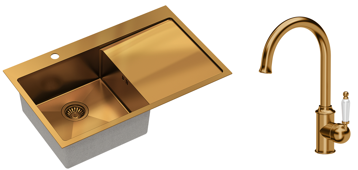 Zestaw zawiera zlewozmywak stalowy RUSSEL 111 MIEDZIANY + bateria kuchenna RACHEL Q LINE + syfon save space z odpływem 3,5"