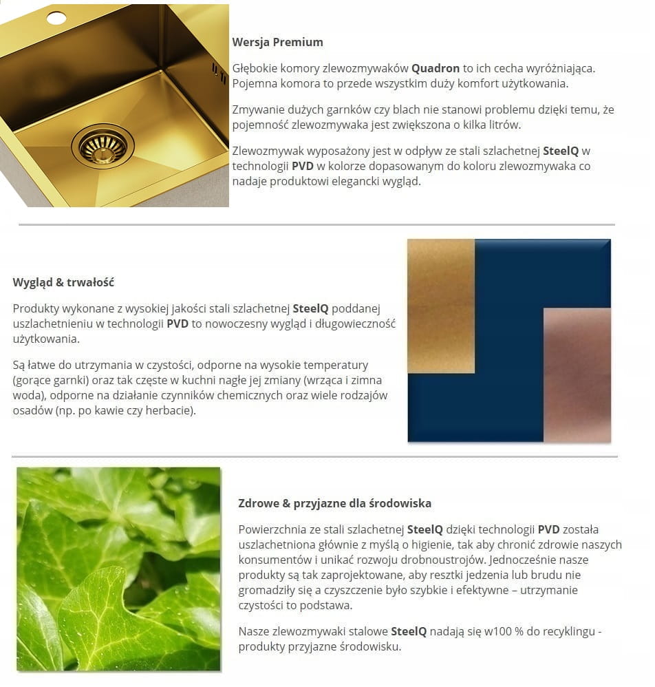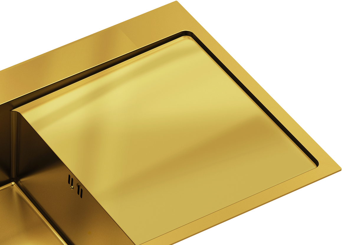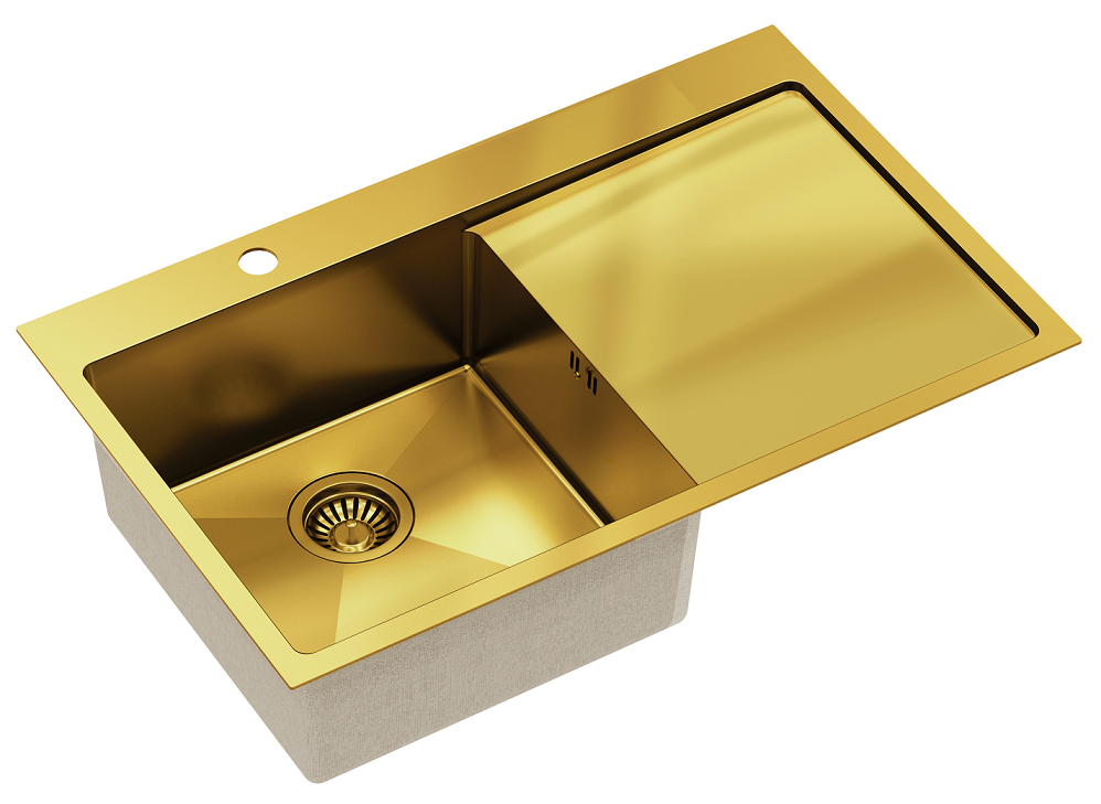 Zestaw zawiera zlewozmywak stalowy RUSSEL 111 ZŁOTY + bateria kuchenna NATALIE Q LINE + syfon save space z odpływem 3,5"