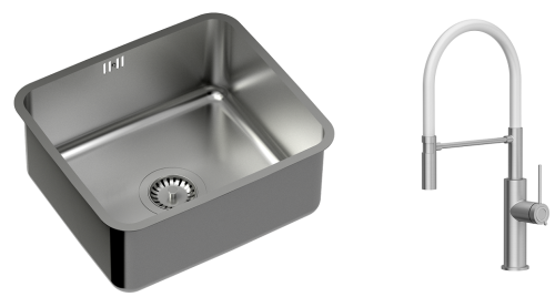 Zestaw zawiera zlewozmywak stalowy NICOLAS STAL SZCZOTKOWANA + bateria kuchenna GEMMA Q LINE SLIM + syfon save space z odpływem 3,5"