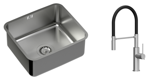 Zestaw zawiera zlewozmywak stalowy NICOLAS STAL SZCZOTKOWANA + bateria kuchenna GEMMA Q LINE SLIM + syfon save space z odpływem 3,5"