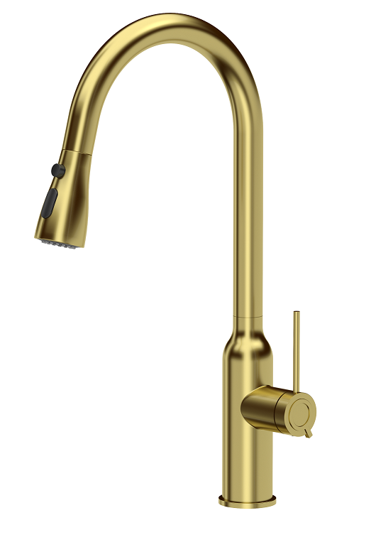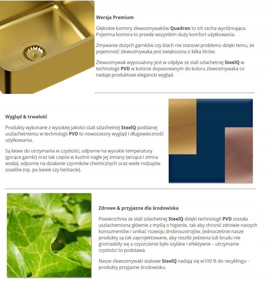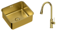 Zestaw zawiera zlewozmywak stalowy NICOLAS ZŁOTY + bateria kuchenna JESSICA Q LINE z wyciąganą wylewką i funkcją prysznica + syfon save space z odpływem 3,5"