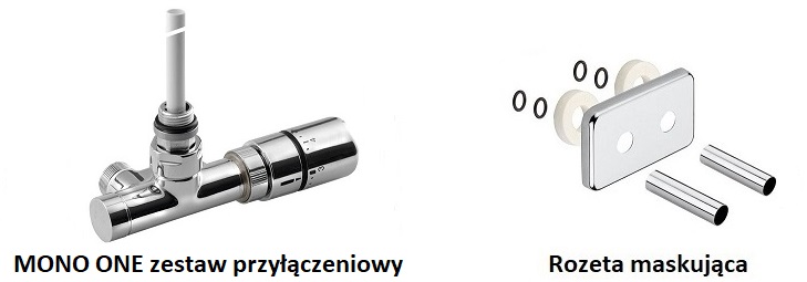 Zawór oraz rozeta nie są na wyposażeniu grzejnika OTHELLO, są jedynie propozycją i można je znaleźć w produktach powiązanych.