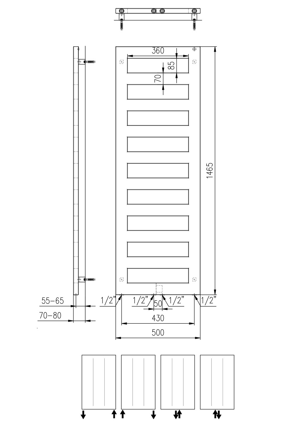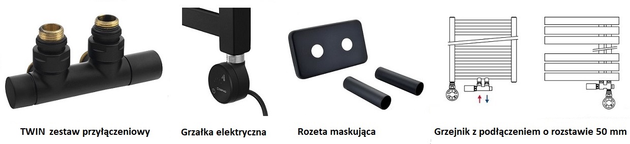 Zastosowanie podłączenia zasilania grzejnika przez instalację centralnego ogrzewania jak i wykorzystanie elektrycznej grzałki do samodzielnego ogrzewania poza sezonem grzewczym. Zalecamy zastosowanie grzałki o takiej samej lub podobnej mocy w zależności od specyfikacji grzejnika.