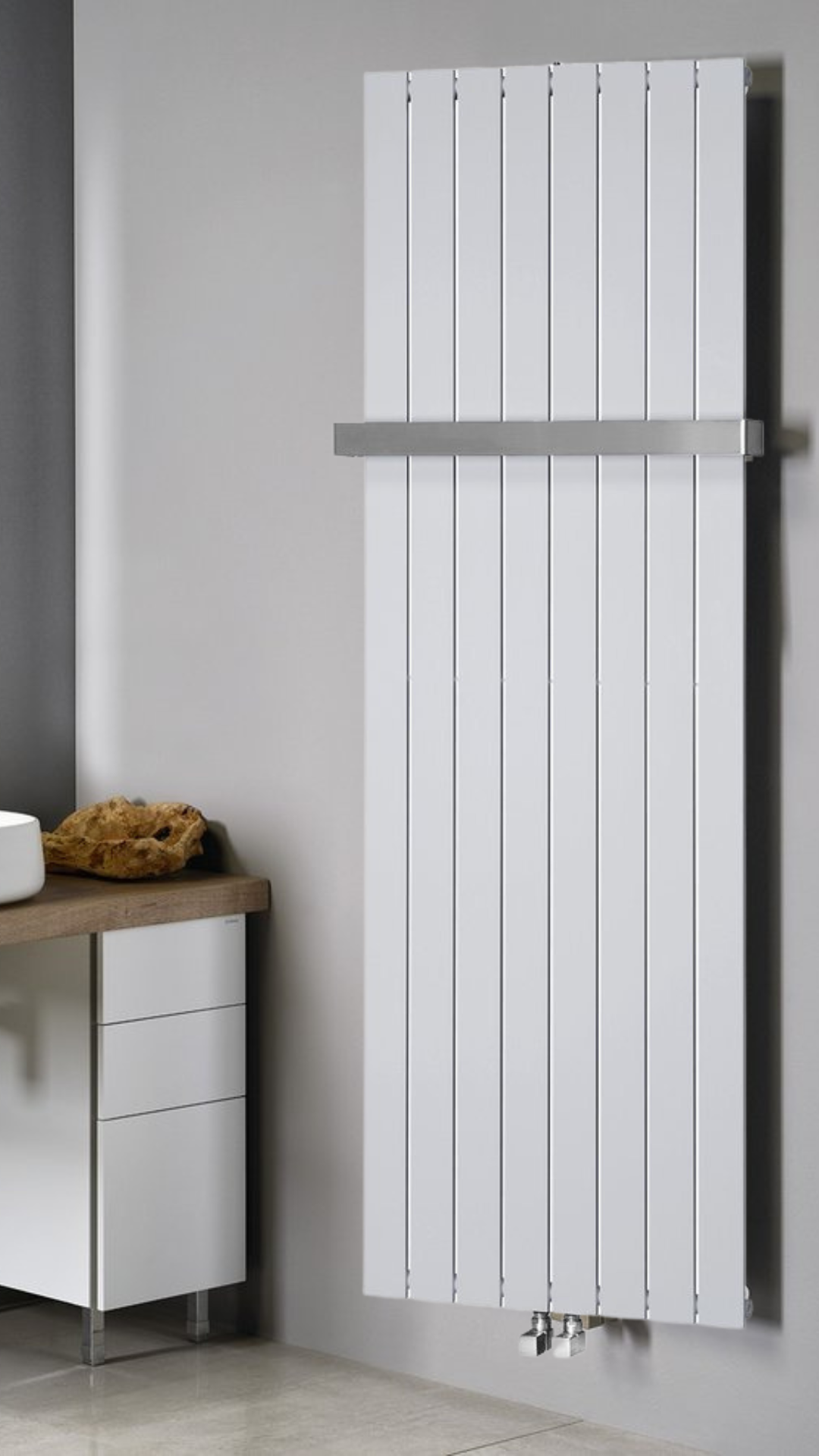 Zawór, rozeta oraz wieszak nie są na wyposażeniu grzejnika COLONNA, są jedynie propozycją i można je znaleźć w produktach powiązanych.