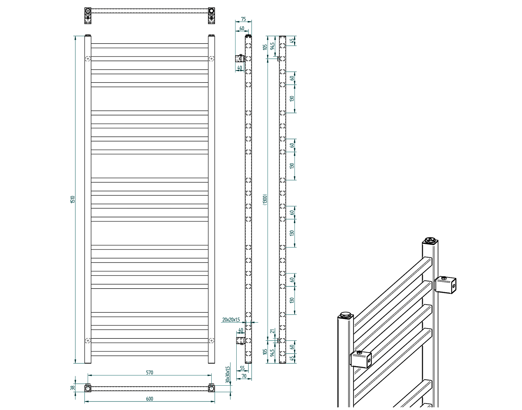 Zastosowanie podłączenia zasilania grzejnika przez instalację centralnego ogrzewania jak i wykorzystanie elektrycznej grzałki do samodzielnego ogrzewania poza sezonem grzewczym. Zalecamy zastosowanie grzałki o takiej samej lub podobnej mocy w zależności od specyfikacji grzejnika.