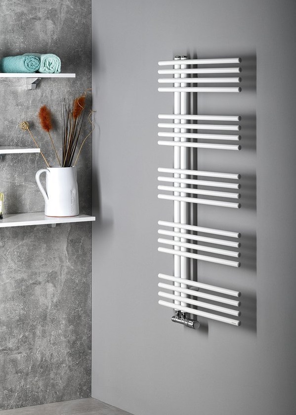 NYMPHA to oryginalny grzejnik łazienkowy w nowoczesnym wykonaniu z prostymi profilami w kształcie litery E, który jest nieodzownym elementem wyposażenia łazienki i daje nam komfort użytkowania. Łazienka to miejsce gdzie zaczynamy każdy dzień więc warto zadbać aby była dla nas miejscem nie tylko do higieny ale również służyła nam do relaksu i poprawy nastroju a jej wyposażenie stało się naszą wizytówką. Warto więc zainwestować w nowoczesny wygląd wybierając między innymi piękny i wyjątkowy grzejnik jakim jest NYMPHA, który oferuje nam czeska firma SAPHO, dbająca od wielu lat o jakość asortymentu i zadowolenie swoich klientów. Dzięki swojej praktycznej konstrukcji grzejnik można zastosować do ogrzewania centralnego jak również poza sezonem grzewczym z zastosowaniem grzałki elektrycznej cieszyć się z jego funkcjonalności gdzie w wygodny sposób umożliwia np. suszenia ręczników. Dodatkową zaletą grzejnika NYMPHA jest to, że jest uniwersalny, obracany o 180° z możliwością obustronnego zawieszenia, lewy lub prawy wariant montażu. Grzejnik NYMPHA posiada oryginalny i estetyczny kształt, który idealnie wpasuje się aranżację łazienki oraz będzie zachwycał i przyciągał wzrok swoim wyglądem dając przy tym komfort ciepła i elegancji.