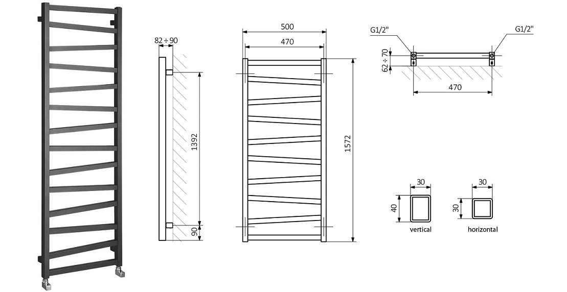 Zastosowanie podłączenia zasilania grzejnika przez instalację centralnego ogrzewania jak i wykorzystanie elektrycznej grzałki do samodzielnego ogrzewania poza sezonem grzewczym. Zalecamy zastosowanie grzałki o takiej samej lub podobnej mocy w zależności od specyfikacji grzejnika.