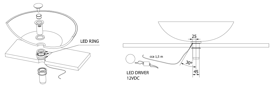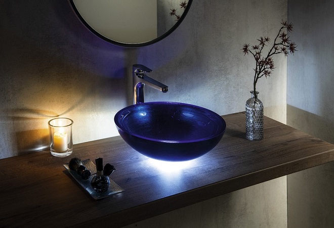Nastrojowe oświetlenie łazienkowe LEDRING to totalny "must have" przy umywalkach szklanych. Piękno umywalek szklanych w pełni uwidacznia się jedynie poprzez przechodzenie światła przez ich ścianę. Pierścień oświetleniowy ma przezroczystą uszczelkę po obu stronach i jest łatwy do zainstalowania na odpływie umywalki. Wykonany jest z przezroczystego akrylu i emituje światło w kierunku umywalki i pod umywalką. Dzięki niskiemu poborowi 1,2 W może świecić w sposób ciągły (zużycie ok. 0,9 kW / h miesięcznie). Ten prześliczny gadżet jest częścią szerokiej gamy produktów marki SAPHO czeskiego producenta, który wiedzie w swoim rodzimym kraju prym w dostarczaniu pełnego wyposażenia łazienek. Firma działa już około trzydziestu lat na rynku i dokłada wszelkich starań aby klienci byli zadowoleni i wracali po kolejne projekty wychodzące z rąk projektantów tej marki :)