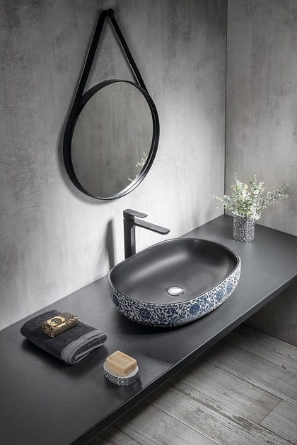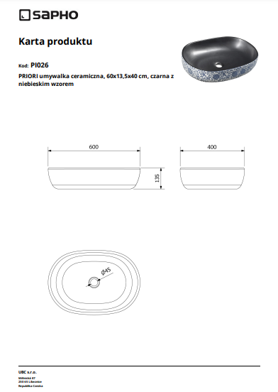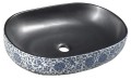 Umywalka nablatowa SAPHO PRIORI owalna z niebieskim kwiatowym motywem to finezyjna umywalka prezentująca ponadczasowy, chętnie wybierany owalny kształt, który przyciąga uwagę i daje poczucie bezpieczeństwa podczas użytkowania :) Delikatnie zaokrąglone boki są opływowe i bezpieczne, dodatkowo wysoka jakość ceramiki przyczynia się do komfortu użytkownika oraz łatwości utrzymania tego produktu w czystości. Ta wyjątkowa umywalka charakteryzuje się ciekawym połączeniem kolorów, a konkretnie od wewnątrz jest idealnie czarna, natomiast na zewnętrznej ścianie dumnie prezentuje piękny kwiatowy motyw w niebieskim kolorze, to sprzeczne połączenie daje niepowtarzalny efekt wizualny, który dodatkowo podkreśla charakter tej niesamowitej umywalki. Skupiając się na tym ciekawym połączeniu kolorów trzeba podkreślić, że umywalka jest idealnie gładka wewnątrz, dzięki czemu osad z mydła nie możliwości pozostawania na powierzchni misy, natomiast delikatne kwiatowe motywy z zewnętrznej strony umywalki nadają jej wyjątkowego designu oraz ciekawie podkreślają głęboki kolor czerni, która w tym produkcie prezentuje się wprost niesamowicie :) Umywalki w kolorze czerni są doskonałym dopełnieniem nowoczesnych aranżacji w których są ciekawym kolorystycznym, wyróżniającym się akcentem, natomiast w aranżacji klasycznej będą powiewem nowoczesności zawartej w jednym subtelnym sanitariacie bez którego każda łazienka będzie niekompletna :) ale czarne umywalki w połączeniu z pięknymi malowanym motywami na zewnątrz są niesamowicie wyszukane i oryginalnie ekstrawaganckie, gdyż są tak różne od tradycyjnych sanitariatów, że aż niemożliwe w swojej oczywistości :) Po prostu genialne połączenia artystycznego malowidła z prostotą zwykłego urządzenia łazienkowego :) taka mała namiastka sztuki w kompozycji łazienkowej :) Ten fajny i przyciągający wzrok produkt jest owocem pracy czeskiego producenta marki SAPHO, która wiedzie w swoim rodzimym kraju prym w dostarczaniu pełnego wyposażenia łazienek. Firma działa już około trzydzieści lat na rynku i dokłada wszelkich starań aby klienci byli zadowoleni i wracali po kolejne projekty wychodzące z rąk projektantów tej marki :) Warto postawić na wyjątkowy produkt, który dodatkowo daje wspaniały efekt wizualny, raz zez względu na fajny kształt dwa zez względu na ciekawy kolor, który jest dopełnieniem całego niesamowicie efektownego projektu. Dodaj swojej łazience niepowtarzalnego zadziorka w aranżacji wybierając małe dzieło sztuki, którym jest prezentowany wyżej model PRIORI :)