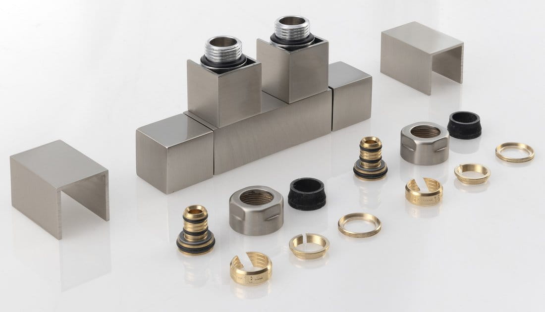 CUBE TWIN zestaw przyłączeniowy to element wyposażenia grzejnika łazienkowego. W przypadku ogrzewania centralnego ważny jest dobór zestawu przyłączeniowego. Do wyboru jest zawór ręczny lub zawór z głowicą termostatyczną. Tu naprzeciw wychodzi nam firma SAPHO z ofertą zestawu przyłączeniowego CUBE TWIN z podłączeniem środkowym, którym w łatwy i indywidualny sposób można regulować temperaturę grzejnika a tym samym tworzyć komfort ciepła w łazience.