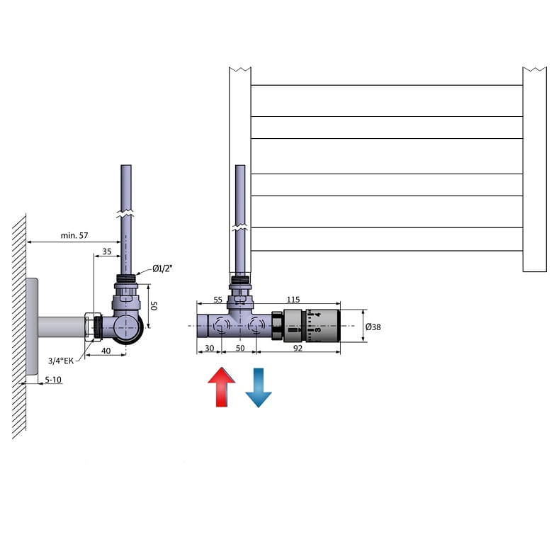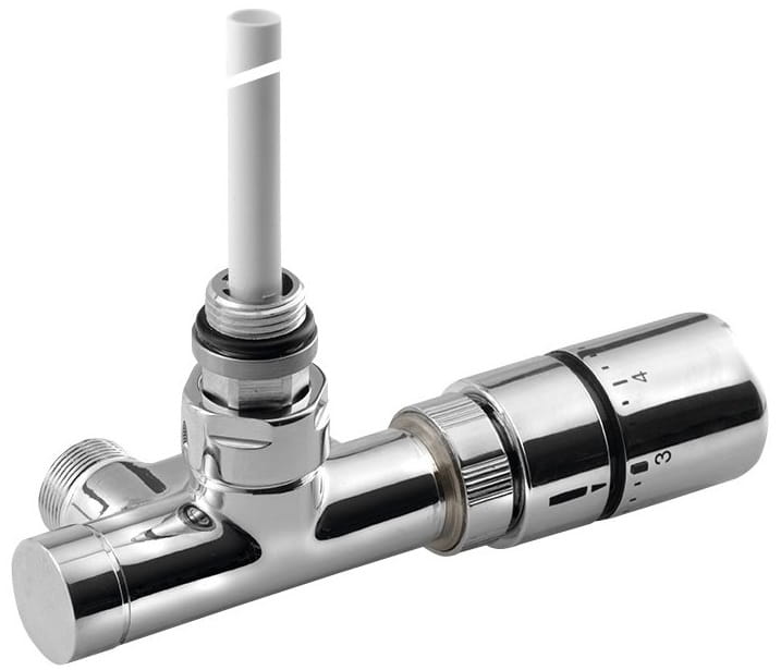 Zawór z głowicą termostatyczną: Zintegrowany termostat utrzymuje ustawioną temperaturę wewnątrz urządzenia. Zawór termostatyczny musi znajdować się na wlocie ciepłej wody.