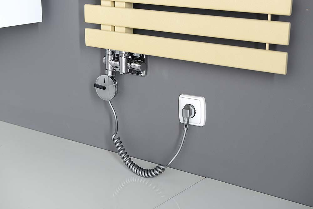 2. Grzałkę instaluje się prosto do konstrukcji urządzenia, poza zawór przyłączeniowy - grzejnik podłącza się zwykłym zespolonym zestawem przyłączeniowym.
