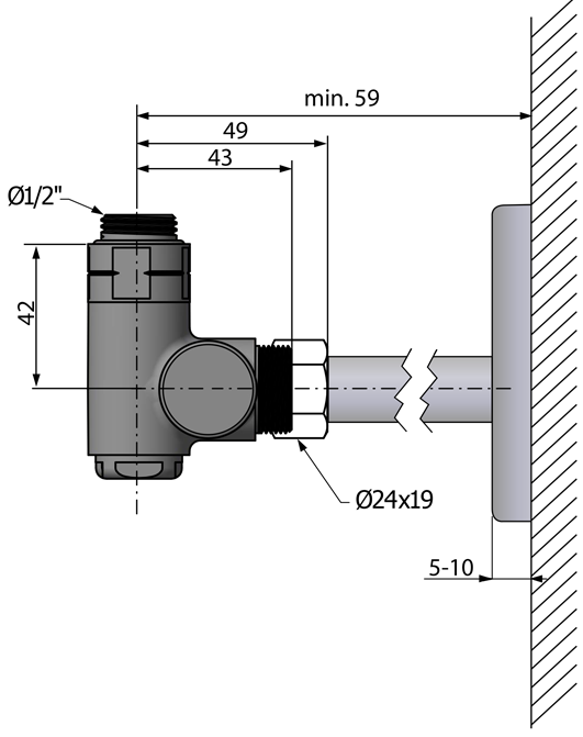 Zawór manualny: Głowica sterująca zaworu może być zainstalowana po lewej/prawej stronie niezależnie od miejsca doprowadzenia ciepłej wody. Temperaturę reguluje się manualnie.