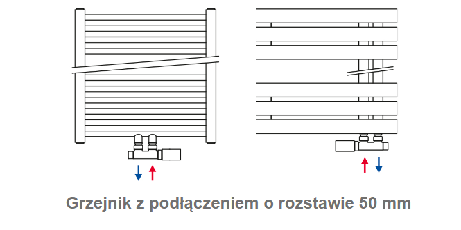 W przypadku gdy urządzenie posiada podłączenie środkowe, podłącza się dwoma sposobami, w zależności od konstrukcji grzejnika.
