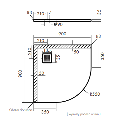 • średnica odpływu: Ø 90 mm,