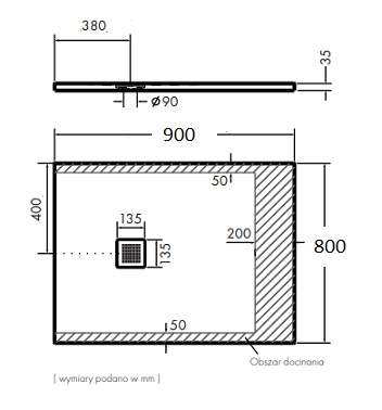 • średnica odpływu: Ø 90 mm,