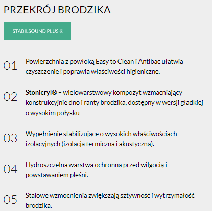 KALAIT CEMENT STONE to nowoczesne brodziki wzorowane na ponadczasowej geometrii, których znakiem rozpoznawczym jest niesamowicie intrygująca w dotyku struktura przypominająca do złudzenia kamień. Kamień kojarzy się z wytrzymałością, elegancją i ponadczasowością sam w sobie z natury jest ciężki i zimny, ale dzięki nowoczesnej technologii marki SCHEDPOL mamy do czynienia z kamieniem w innym wydaniu :) A konkretnie materiał z którego wykonany jest brodzik KALAIT jest wytrzymały jak kamień, jego struktura przypomina kamień, ale konstrukcja jest stosunkowo lekka i co ważne brodzik doskonale przewodzi ciepło, dzięki czemu kontakt ze skórą stóp jest przyjemny :) Brak klasycznych rantów przekłada się na niezwykle przestrzenną i czystą formę strefy kąpielowej, a odpowiednie spady konstrukcyjne zapewniają sprawny odpływ wody. Brodziki dają możliwość montażu „wpuszczanego”, dzięki czemu eliminują próg na wejściu do strefy prysznicowej. Seria KALAIT CEMENT STONE tak jak zaznaczone było wcześniej, posiada matową powierzchnię o strukturze, naturalnego kamienia w inspirującym kolorze przypominającym cement odcień - RAL 7038. Cement jest to ciekawy odcień szarości, który jest na tyle intrygujący, że stał się bardzo chętnie wybieranym kolorem w aranżacjach, a sanitariaty w tym odcieniu to ciekawy akcent. Kolor szary na pozór neutralny i skromny, ale w połączeniu z ciekawymi kafelkami będzie znakomitym podkreśleniem każdej aranżacji :) Zaledwie 3,5 cm wysokości całkowitej oraz minimalistyczne wzornictwo efektownie akcentują strefę prysznica, zdobiąc wnętrze w nietuzinkowy sposób. Powierzchnia „CEMENT Stone” jest niezwykle trwała, do tego posiada właściwości Easy to Clean® oraz Antibac®. Płytkość brodzików sprawia, iż pasują one doskonale do nowoczesnych wnętrz. Projektanci tworząc tą prezentowaną serię brodzików kierowali się ekskluzywnym designem połączonym z łatwością montażu i pełnym zadowoleniem użytkownika :) Prezentowana linia z niesamowicie odporną na zanieczyszczenia maskownicą wykonaną ze stali nierdzewnej to model reprezentujący grupę brodzików, które będą doskonałym wyborem do każdego typu łazienki :) Brodziki o strukturze kamienia doskonale zaprezentują się w klasycznej aranżacji, a w nowoczesnym salonie kąpielowym będą dosłownie "kropeczką nad literką i". Tak nietuzinkowe brodziki zostały stworzone dla ludzi, którzy stawiają na jakość, i ekstrawagancję, nie bojąc się odważnych aranżacji i rewolucyjnych rozwiązań :) Designerskie brodziki KALAIT CEMENT STONE wykonano z wysokogatunkowego wielowarstwowego kompozytu Stonicryl® wzmacniającego konstrukcyjnie dno i ranty brodzika, z matowym efektem mineralnym (kamienista struktura powierzchni). Co istotne - brodziki są bezpieczne dla zdrowia i środowiska, tj. wolne od FCKW, czyli nie zawierają freonów, które niszczą warstwę ozonową, a tym samym przyczyniają się do globalnego ocieplenia klimatu. Brodziki z podbudową STABILSOUND PLUS® wyróżnia nie tylko zintegrowana forma, ale również wysoka wytrzymałość brodzika na nacisk i na uszkodzenia mechaniczne :) Zastosowane technologie doskonale zabezpieczają powierzchnię przed uszkodzeniami mechanicznymi oraz mają zastosowanie wygłuszające i termoizolacyjne. nietuzinkowy kolor szarości doskonale wkomponuje się w każdą aranżację i sprawi, że łazienka będzie odświeżona i intrygująca :) Wysokiej jakości kompozyt jest bardzo trwały oraz doskonale przewodzi ciepło, co sprawia dodatkowe poczucie przyjemności podczas kąpieli pod prysznicem, gdyż powierzchnia brodzika jest ciepła co sprawia, że kontakt skóry stóp z powierzchnią brodzika jest naturalnym doznaniem :) Warto podkreślić, że ciekawa struktura kamienia sprawia, że powierzchnia nie będzie śliska co sprawi większe poczucie bezpieczeństwa :) Kolejnym walorem brodzików KALAIT jest szybki i prosty montaż, który może wykonać samodzielnie jedna osoba. Brodzik można zamontować bezprogowo (rozwiązanie to docenią wszyscy użytkownicy, a szczególnie seniorzy lub osoby z ograniczeniami ruchowymi). Powierzchnia o szarej kamienistej strukturze (RAL 7038; klasa antypoślizgowa „A” zgodnie z DIN 51097) zapewnia komfort użytkowania i zmniejsza ryzyko upadków spowodowanych poślizgnięciem. Seria ta idealnie wpasuje się do każdej przestrzeni łazienkowej ponieważ istnieje możliwość docięcia brodzika do odpowiedniego wymiaru. Warto pokusić się na produkt, który jest efektowny wizualnie i komfortowy w użytkowaniu :) Takim produktem jest właśnie linia KALAIT CEMENT STONE będącą częścią marki SCHEDPOL :)
