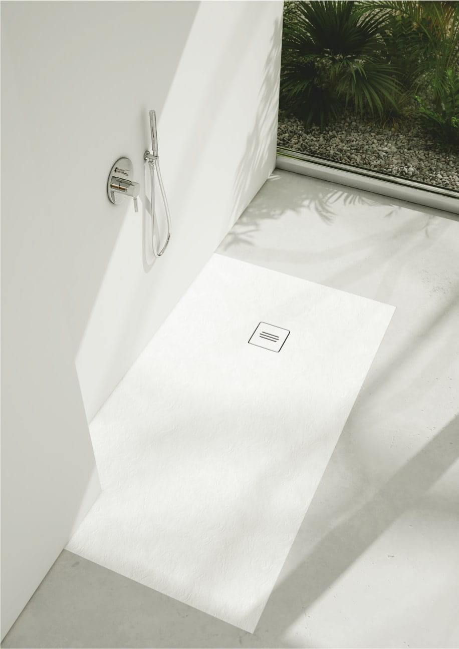 PROTOS WHITE STONE ( biały kamień ) to wyrafinowane brodziki charakteryzujące się nowoczesnym designem podkreślonym niesamowitą w dotyku strukturą przypominającą do złudzenia kamień. Brak klasycznych rantów przekłada się na niezwykle przestrzenną i czystą formę strefy kąpielowej, a odpowiednie spady konstrukcyjne zapewniają sprawny odpływ wody. Brodziki dają możliwość montażu „wpuszczanego”, dzięki czemu eliminują próg na wejściu do strefy prysznicowej. Seria PROTOS WHITE STONE posiada matową powierzchnię o strukturze naturalnego kamienia w białym kolorze (RAL 9003). Zaledwie 3,5 cm wysokości całkowitej oraz minimalistyczne wzornictwo efektownie akcentują strefę prysznica, zdobiąc wnętrze w nietuzinkowy sposób. Powierzchnia „White Stone” jest niezwykle trwała, do tego posiada właściwości Easy to Clean® oraz Antibac®. Płytkość brodzików sprawia, iż pasują one doskonale do nowoczesnych wnętrz. Linia PROTOS WHITE STONE to kolejny członek ekskluzywnej rodziny SCHEDLINE COLLECTION, która wyróżnia się elegancją i dozą wyrachowanego stylu, który ciekawi i zachęca swoimi walorami :) Projektanci tworząc tą markę kierowali się elegancją połączoną z łatwością montażu i pełnym zadowoleniem użytkownika :) Prezentowana odsłona z ciekawą maskownicą odpływu to model reprezentujący grupę brodzików kwadratowych. Brodziki PROTOS WHITE STONE zostały stworzone dla ludzi, którzy stawiają na jakość, styl i ekstrawagancję, nie boją się odważnych aranżacji i nowoczesnych rozwiązań :) Designerskie brodziki PROTOS WHITE STONE wykonano z wysokogatunkowego wielowarstwowego kompozytu Stonicryl® wzmacniającego konstrukcyjnie dno i ranty brodzika, dostępny w wersji gładkiej o wysokim połysku lub z matowym efektem mineralnym (kamienista struktura powierzchni). Co istotne - brodziki są bezpieczne dla zdrowia i środowiska, tj. wolne od FCKW, czyli nie zawierają freonów, które niszczą warstwę ozonową, a tym samym przyczyniają się do globalnego ocieplenia klimatu. Brodziki z podbudową STABILSOUND PLUS® wyróżnia nie tylko zintegrowana forma, ale również wysoka wytrzymałość brodzika na nacisk i na uszkodzenia mechaniczne :) Zastosowane technologie doskonale zabezpieczają powierzchnię przed uszkodzeniami mechanicznymi oraz mają zastosowanie wygłuszające i termoizolacyjne. Tajemniczy i ponadczasowy kolor bieli doskonale wkomponuje się w każdą aranżację i sprawi, że łazienka będzie zachwycająca i sterylnie czysta :) Wysokiej jakości kompozyt jest bardzo trwały oraz doskonale przewodzi ciepło, co sprawia dodatkowe poczucie przyjemności podczas kąpieli pod prysznicem, gdyż powierzchnia brodzika jest ciepła co sprawia, że kontakt skóry stóp z powierzchnią brodzika jest naturalnym doznaniem :) Warto podkreślić, że ciekawa struktura kamienia sprawia, że powierzchnia nie będzie śliska co sprawi większe poczucie bezpieczeństwa :) Kolejnym walorem brodzików PROTOS jest szybki i prosty montaż, który może wykonać samodzielnie jedna osoba. Brodzik można zamontować bezprogowo (rozwiązanie to docenią wszyscy użytkownicy, a szczególnie seniorzy lub osoby z ograniczeniami ruchowymi). Powierzchnia o białej kamienistej strukturze (RAL 9003; klasa antypoślizgowa „A” zgodnie z DIN 51097) zapewnia komfort użytkowania i zmniejsza ryzyko upadków spowodowanych poślizgnięciem. Seria ta idealnie wpasuje się do każdej przestrzeni łazienkowej, ponieważ istnieje możliwość docięcia brodzika do odpowiedniego wymiaru. Oprócz brodzika w zestawie znajduje się warta dodatkowego podkreślenia ciekawa a zarazem bardzo subtelna maskownica maskownica M1, która doskonale wtapia się w powierzchnię brodzika :) Warto pokusić się na produkt, który jest efektowny wizualnie i komfortowy w użytkowaniu :) Takim produktem jest właśnie linia PROTOS WHITE STONE będącą częścią rodziny SCHEDLINE COLLECTION :)