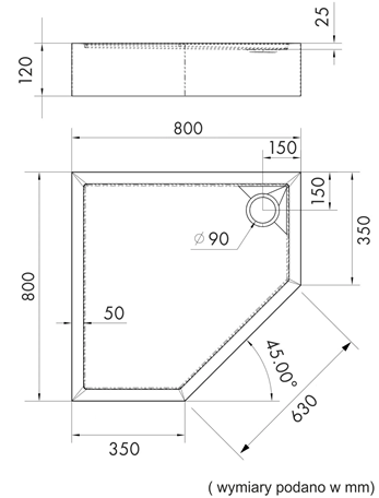 SCHEDPOL SCHEDLINE COLLECTION Brodzik pięciokątny CAMERON BLACK STONE (czarny kamień) 80x80x12 z systemem STABILSOUND PLUS 3ST.C1PK-8080/C/ST - Darmowa dostawa