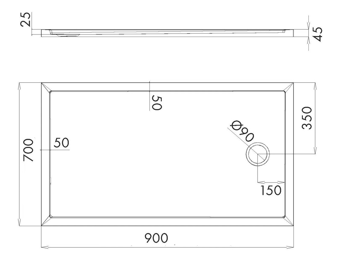 • średnica odpływu: Ø 90 mm,
