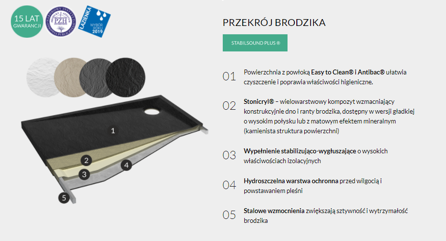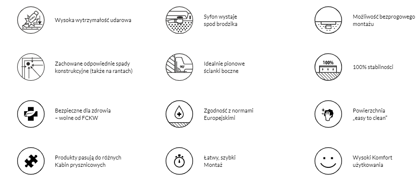 LIBRA ANTHRACITE STONE to subtelne brodziki charakteryzujące się niesamowitą w dotyku strukturą przypominającą do złudzenia kamień. Seria Libra oferuje minimalistyczny design w połączeniu z wygodą codziennego użytkowania. Brak klasycznych rantów przekłada się na niezwykle przestrzenną i czystą formę strefy kąpielowej, a odpowiednie spady konstrukcyjne zapewniają sprawny odpływ wody. Brodziki dają możliwość montażu „wpuszczanego”, dzięki czemu eliminują próg na wejściu do strefy prysznicowej. Seria Libra Anthracite Stone posiada matową powierzchnię o strukturze, naturalnego kamienia w ciemnym odcieniu (RAL 9016). Zaledwie 3 cm wysokości całkowitej oraz minimalistyczne wzornictwo efektownie akcentują strefę prysznica, zdobiąc wnętrze w nietuzinkowy sposób. Powierzchnia „Anthracite Stone” jest niezwykle trwała, do tego posiada właściwości Easy to Clean® oraz Antibac®. Płytkość brodzików sprawia, iż pasują one doskonale do nowoczesnych wnętrz. Linia LIBRA ANTHRACITE STONE to kolejny członek ekskluzywnej rodziny SCHEDLINE COLLECTION, która wyróżnia się elegancją i dozą wyrachowanego stylu, który ciekawi i zachęca swoimi walorami :) Projektanci tworząc tą markę kierowali się elegancją połączoną z łatwością montażu i pełnym zadowoleniem użytkownika :) Prezentowana odsłona z odpływem usytuowanym w rogu to model reprezentujący grupę brodzików prostokątnych. Dzięki tak przemyślanemu miejscu na odpływ mamy dużą płaszczyznę brodzika, dzięki czemu jego użytkowanie jest bardzo wygodne. Brodziki LIBRA ANTHRACITE STONE zostały stworzone dla ludzi, którzy stawiają na jakość, styl i ekstrawagancję, nie boją się odważnych aranżacji i nowoczesnych rozwiązań :) Designerskie brodziki LIBRA ANTHRACITE STONE wykonano z wysokogatunkowego wielowarstwowego kompozytu Stonicryl® wzmacniającego konstrukcyjnie dno i ranty brodzika, dostępny w wersji gładkiej o wysokim połysku lub z matowym efektem mineralnym (kamienista struktura powierzchni). Co istotne - brodziki są bezpieczne dla zdrowia i środowiska, tj. wolne od FCKW, czyli nie zawierają freonów, które niszczą warstwę ozonową, a tym samym przyczyniają się do globalnego ocieplenia klimatu. Brodziki z podbudową STABILSOUND PLUS® wyróżnia nie tylko zintegrowana forma, ale również wysoka wytrzymałość brodzika na nacisk i na uszkodzenia mechaniczne :) Zastosowane technologie doskonale zabezpieczają powierzchnię przed uszkodzeniami mechanicznymi oraz mają zastosowanie wygłuszające i termoizolacyjne. Tajemniczy i niepowtarzalny kolor doskonale wkomponuje się w każdą aranżację i sprawi, że łazienka będzie jedyna w swoim rodzaju :) Wysokiej jakości kompozyt jest bardzo trwały oraz doskonale przewodzi ciepło, co sprawia dodatkowe poczucie przyjemności podczas kąpieli pod prysznicem, gdyż powierzchnia brodzika jest ciepła co sprawia, że kontakt skóry stóp z powierzchnią brodzika jest naturalnym doznaniem :) Warto podkreślić, że ciekawa struktura kamienia sprawia, że powierzchnia nie będzie śliska co sprawi większe poczucie bezpieczeństwa :) Warto pokusić się na produkt, który jest efektowny wizualnie i komfortowy w użytkowaniu :) Takim produktem jest właśnie linia LIBRA ANTHRACITE STONE będącą częścią rodziny SCHEDLINE COLLECTION :)