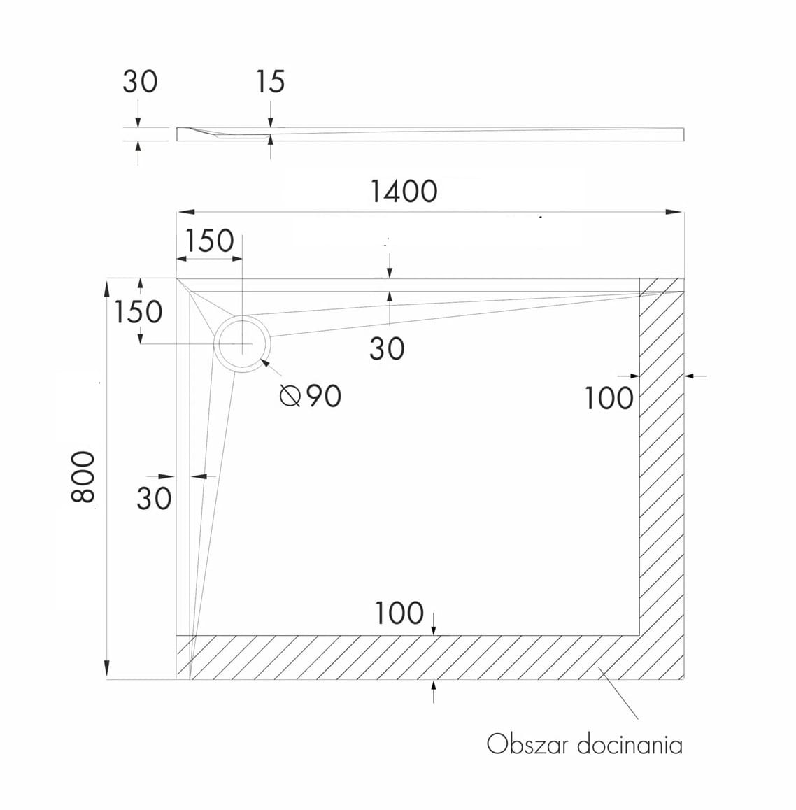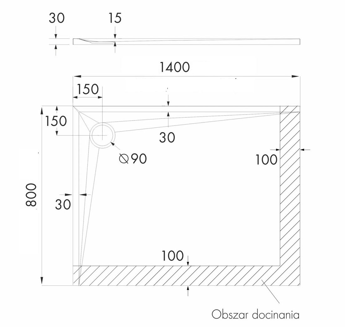 • średnica odpływu: Ø 90 mm,