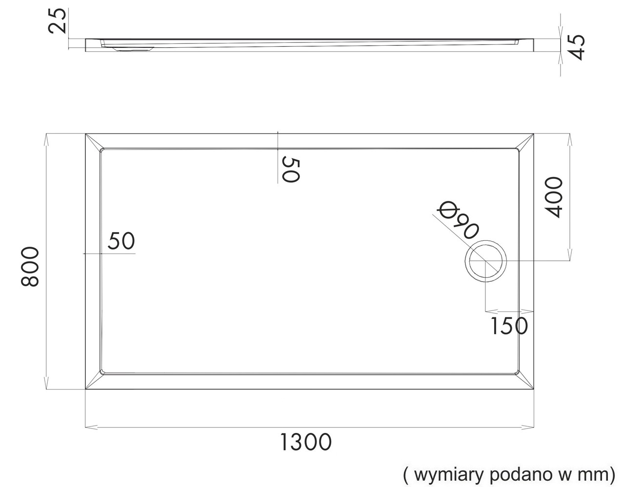 SCHEDPOL SCHEDLINE COLLECTION Brodzik prostokątny SHARPER SMOOTH WHITE (biały gładki) 80x130x4,5 z systemem STANDARD PLUS 3S.S2P-80130 - Darmowa dostawa