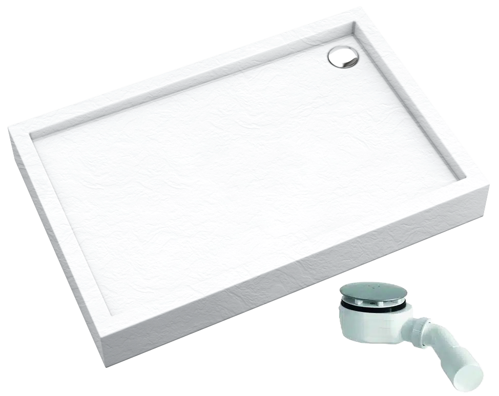 FAVORY PLUS WHITE STONE to połączenie klasyki i zaawansowanej technologii. Charakteryzują się nowoczesnym designem podkreślonym niesamowitą w dotyku strukturą przypominającą do złudzenia kamień. Dostępny w najbardziej topowych kształtach oraz rozmiarach. Swoim designem idealnie wpasuje się w niemal każdą łazienkę. Produkty z tej serii charakteryzują się wysoką stabilnością oraz świetną izolacją termiczną i akustyczną. Montaż jest bardzo prosty i szybki – może zostać wykonany przez jedną osobę. Seria FAVORY PLUS WHITE STONE posiada matową powierzchnię o strukturze naturalnego kamienia w białym kolorze (RAL 9003). Powierzchnia „White Stone” jest niezwykle trwała, do tego posiada właściwości Easy to Clean® oraz Antibac®. Linia FAVORY PLUS WHITE STONE to kolejny członek ekskluzywnej rodziny SCHEDLINE COLLECTION, która wyróżnia się elegancją i dozą wyrachowanego stylu, który ciekawi i zachęca swoimi walorami :) Projektanci tworząc tą markę kierowali się elegancją połączoną z łatwością montażu i pełnym zadowoleniem użytkownika :) Posiada pełne podparcie zarówno na rantach jak i na dnie, co zapewnia stuprocentową stabilność wyrobu oraz doskonałą izolację termiczną i akustyczną. Co istotne - brodziki te są bezpieczne dla zdrowia i środowiska, tj. wolne od FCKW, czyli nie zawierają freonów, które niszczą warstwę ozonową, a tym samym przyczyniają się do globalnego ocieplenia klimatu. Brodziki z podbudową STABILSOUND® PLUS wyróżnia zintegrowana forma oraz wzmocniona konstrukcja (system pianowania PU+). Technologia zapewnia wysoką wytrzymałość brodzika na nacisk nawet do 750 kg! Fabryczne kanały na rury odpływowe pozwalają na jeszcze szybszy montaż. Brodzik posiada otwór na syfon o średnicy 90 mm. Tajemniczy i ponadczasowy kolor bieli doskonale wkomponuje się w każdą aranżację i sprawi, że łazienka będzie zachwycająca i sterylnie czysta :) Wysokiej jakości akryl jest bardzo trwały oraz doskonale przewodzi ciepło, co sprawia dodatkowe poczucie przyjemności podczas kąpieli pod prysznicem. Powierzchnia o białej kamienistej strukturze (RAL 9016; klasa antypoślizgowa „A” zgodnie z DIN EN 161625:2023) zapewnia komfort użytkowania i zmniejsza ryzyko upadków spowodowanych poślizgnięciem. Oprócz brodzika w zestawie znajduje się również syfon (przepływ: 66 l/s) z chromowanym grzybkiem.