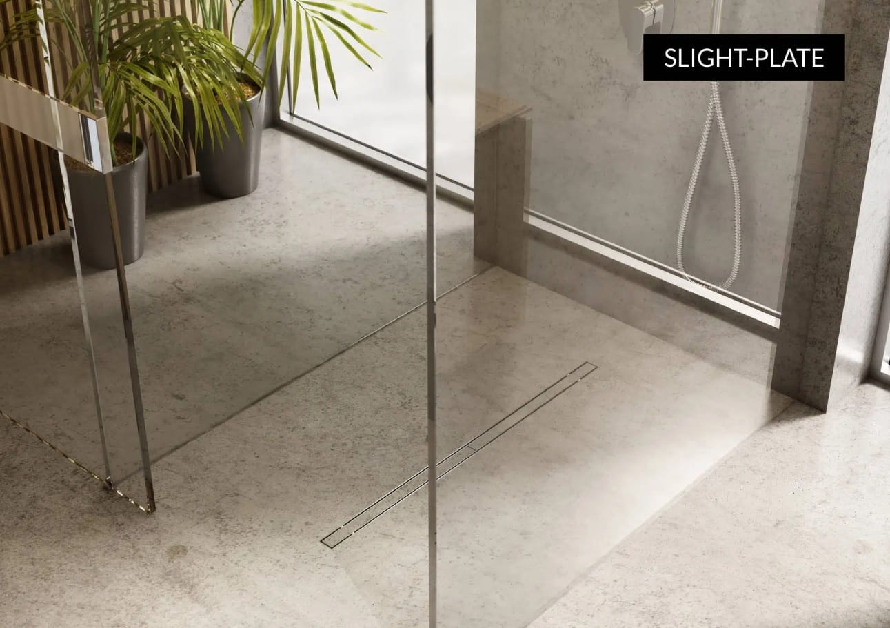 Odpływ liniowy SLIGHT LINE LOW Z MASKOWNICĄ SLIGHT-PLATE to funkcjonalne rozwiązane stosowane w strefach prysznicowych w postaci odpływu liniowego, którego wykorzystanie skutkuje minimalistyczną i komfortową aranżacją w każdej łazience. Zachowanie idealnych parametrów związanych z odpływem wody, a także łatwość czyszczenia oferowanych odpływów liniowych to bardzo ważne dla użytkowników kwestie, na które marka SCHEDLINE COLLECTION kładzie ogromny nacisk podczas produkcji. Produkt musi być funkcjonalny i prosty w użytkowaniu, ale te cechy nie mogą odbijać się na jego jakości. SCHEDLINE COLLECTION to jakość, funkcjonalność i styl zawarty w nowoczesnej formie, która jest wciąż rozwijana przy wykorzystaniu najnowocześniejszych technologii :) SLIGHT LINE LOW to seria odpływów liniowych, które ocieplą i wyróżnią Twoją strefę prysznicową. Bezprogowa strefa prysznicowa to niewątpliwie ukłon w stronę osób starszych czy z ograniczeniami ruchowymi. Wysoka wydajność odbioru wody zapewnia bezpieczeństwo i higienę codziennej kąpieli. Odpływ liniowy sprzedawany jest w komplecie z nowoczesnym i wydajnym syfonem, umożliwiającym efektywny odpływ wody spod prysznica. Dzięki temu nie ryzykujemy zalania łazienki :) SLIGHT LINE LOW w srebrnym kolorze to seria odpływów liniowych o niezwykle minimalistycznym designie. Jest idealną propozycją dla osób ceniących elegancję, prostotę i dostępność. Do wyboru w tej serii mamy zestawy z 3 różnymi maskownicami: Slight-Plate (do zabudowy płytkami), Slight-Steel oraz Slight-Stamp.