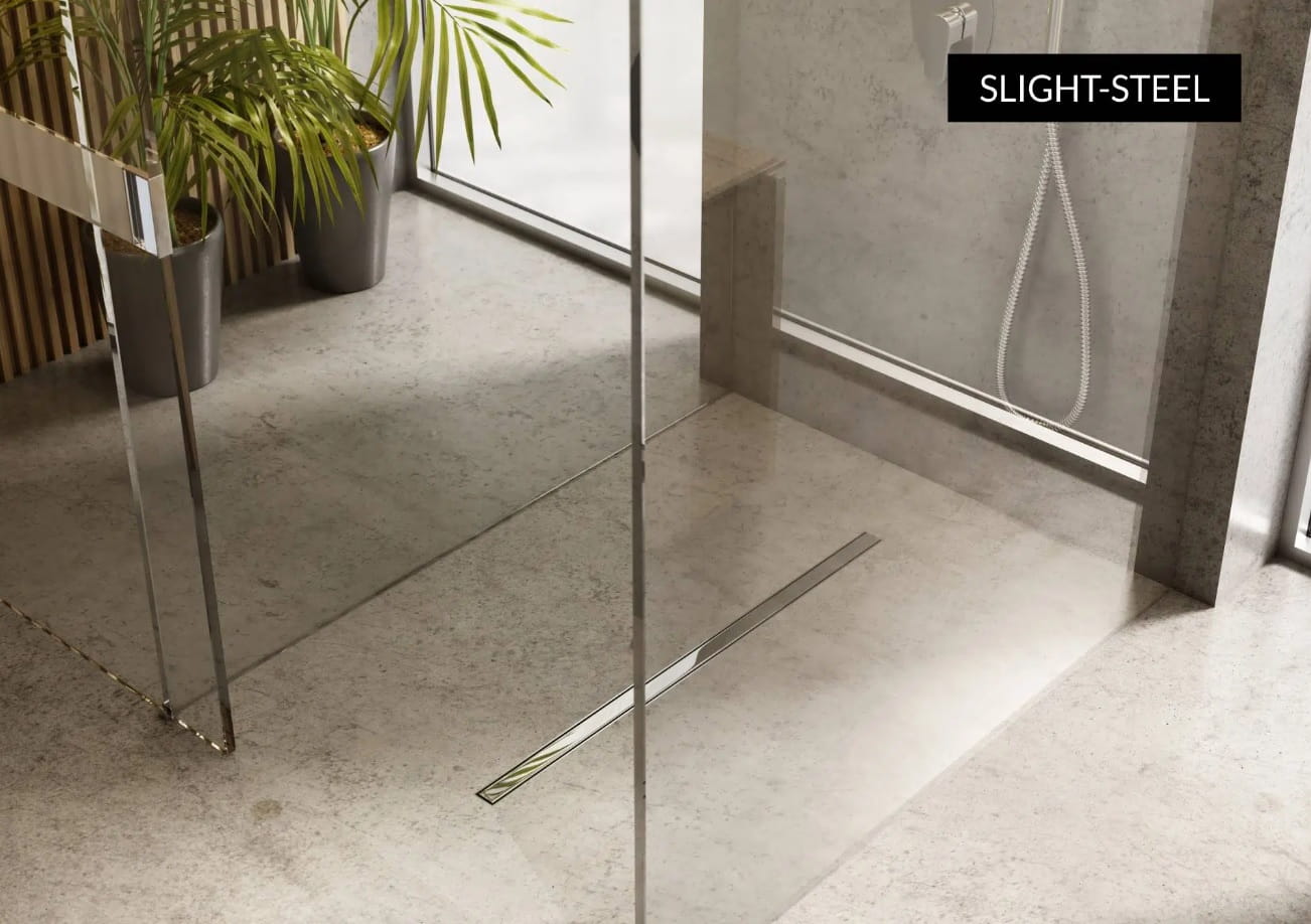 Odpływ liniowy SLIGHT LINE LOW Z MASKOWNICĄ SLIGHT-STEEL to funkcjonalne rozwiązane stosowane w strefach prysznicowych w postaci odpływu liniowego, którego wykorzystanie skutkuje minimalistyczną i komfortową aranżacją w każdej łazience. Zachowanie idealnych parametrów związanych z odpływem wody, a także łatwość czyszczenia oferowanych odpływów liniowych to bardzo ważne dla użytkowników kwestie, na które marka SCHEDLINE COLLECTION kładzie ogromny nacisk podczas produkcji. Produkt musi być funkcjonalny i prosty w użytkowaniu, ale te cechy nie mogą odbijać się na jego jakości. SCHEDLINE COLLECTION to jakość, funkcjonalność i styl zawarty w nowoczesnej formie, która jest wciąż rozwijana przy wykorzystaniu najnowocześniejszych technologii :) SLIGHT LINE LOW to seria odpływów liniowych, które ocieplą i wyróżnią Twoją strefę prysznicową. Bezprogowa strefa prysznicowa to niewątpliwie ukłon w stronę osób starszych czy z ograniczeniami ruchowymi. Wysoka wydajność odbioru wody zapewnia bezpieczeństwo i higienę codziennej kąpieli. Odpływ liniowy sprzedawany jest w komplecie z nowoczesnym i wydajnym syfonem, umożliwiającym efektywny odpływ wody spod prysznica. Dzięki temu nie ryzykujemy zalania łazienki :) SLIGHT LINE LOW w srebrnym kolorze to seria odpływów liniowych o niezwykle minimalistycznym designie. Jest idealną propozycją dla osób ceniących elegancję, prostotę i dostępność. Do wyboru w tej serii mamy zestawy z 3 różnymi maskownicami: Slight-Plate (do zabudowy płytkami), Slight-Steel oraz Slight-Stamp.
