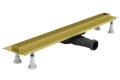 Odpływ liniowy SLIGHT LINE LOW GOLD Z MASKOWNICĄ SLIGHT-PLATE GOLD to funkcjonalne rozwiązane stosowane w strefach prysznicowych w postaci odpływu liniowego, którego wykorzystanie skutkuje minimalistyczną i komfortową aranżacją w każdej łazience. Zachowanie idealnych parametrów związanych z odpływem wody, a także łatwość czyszczenia oferowanych odpływów liniowych to bardzo ważne dla użytkowników kwestie, na które marka SCHEDLINE COLLECTION kładzie ogromny nacisk podczas produkcji. Produkt musi być funkcjonalny i prosty w użytkowaniu, ale te cechy nie mogą odbijać się na jego jakości. SCHEDLINE COLLECTION to jakość, funkcjonalność i styl zawarty w nowoczesnej formie, która jest wciąż rozwijana przy wykorzystaniu najnowocześniejszych technologii :) SLIGHT LINE LOW GOLD to seria odpływów liniowych, które ocieplą i wyróżnią Twoją strefę prysznicową. Seria jest idealną propozycją dla osób ceniących elegancję i przytulność w jednym. Bezprogowa strefa prysznicowa to niewątpliwie ukłon w stronę osób starszych czy z ograniczeniami ruchowymi. Wysoka wydajność odbioru wody zapewnia bezpieczeństwo i higienę codziennej kąpieli. Odpływ liniowy sprzedawany jest w komplecie z nowoczesnym i wydajnym syfonem, umożliwiającym efektywny odpływ wody spod prysznica. Dzięki temu nie ryzykujemy zalania łazienki :) Kolor odpływu – złoty mat (RAL1923) doda elegancji i szyku w każdej łazience bądź salonie kąpielowym. Nie bój się wyzwań i wprowadź niesłychanie modny złoty akcent do swojej nowej i intrygującej strefy prysznica :-)