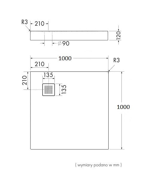 • średnica odpływu: Ø 90 mm,