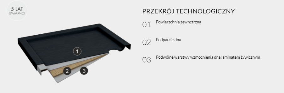 CASPAR NEW BLACK STONE to subtelna kolekcja, która opiera się o prostą, ale ponadczasową geometrię, która jest podstawą w projektach brodzików :) Seria CASPAR NEW BLACK STONE została stworzona dla ludzi ceniących nowoczesny styl w połączeniu z komfortem użytkowania. Niewielka wysokość całkowita sprawia, że te płytkie brodziki mogą zostać zamontowane na posadzce, lub też być w nią wpuszczone - oferując bezprogowy dostęp do strefy kąpielowej. Brodziki zostały wzmocnione laminatem żywicznym i płytą wiórową oraz pokryte innowacyjną powłoką antybakteryjną, ułatwiającą czyszczenie. Gwarantują długoletnie, komfortowe użytkowanie. Dzięki zastosowaniu dodatkowego wzmocnienia w postaci laminatu żywicznego, brodziki są bardziej wytrzymałe i bezpieczne w użytkowaniu :) Dodatkowym atutem jest specjalna powłoka antybakteryjna, dzięki której czyszczenie brodzika jest łatwiejsze, gdyż w mniejszym stopniu pozostają na jego powierzchni osady z kosmetyków pielęgnacyjnych:) Subtelny ale efektowny brodzik na pewno znajdzie miejsce w fajnej łazience :) dodatkowym atutem jest struktura kamienia w odcieni ponadczasowej, pięknej czerni o numerze RAL 9004 :) Warto podkreślić, że dzięki swojej strukturze kamienia brodziki z tej serii zapewniają ochronę przez poślizgnięciem i upadkiem (klasa „A” wg DIN 51097).