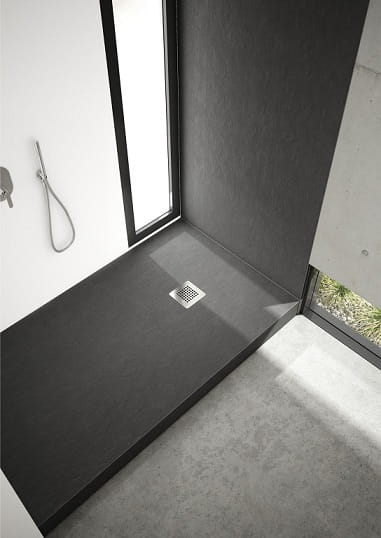 NEW HORIZONS BLACK STONE to ciekawa propozycja brodzików o charakterystycznej wysokości 12 cm, która przyczynia się do trzech możliwości montażu i zachwycającym czarnym kolorem, który doskonale wtapia się w każdą aranżację. Pierwsza metoda montażu polega na postawieniu brodzika na podłodze, przyklejając go do posadzki – to metoda najprostsza i najszybsza, nie wymaga podkuwania, ponieważ syfon znajduje się wewnątrz konstrukcji co jest genialnym rozwiązaniem i bezcennym ułatwieniem całego montażu. Druga możliwość polega na częściowym wpuszczeniu brodzika w podłogę, dzięki czemu skracamy całkowitą wysokość brodzika, ale musimy podkuć lub nadlać posadzkę. Trzecia metoda polega na całkowitym zlicowaniu brodzika z posadzką, dzięki czemu mamy zintegrowaną powierzchnię bez żadnych wypukłych krawędzi brodzika. Całą tą niewiarygodnie ciekawą serię brodzików cechuje pełna stabilność konstrukcji, a każda metoda montażu nie wymaga wiercenia w ścianie czy kotwienia, gdyż ten genialny brodzik jest pod każdym względem dopracowany i stworzony tak aby był funkcjonalny i łatwy w montażu. Kolekcja NEW HORIZONS BLACK STONE jest to inspirująca seria brodzików montowanych bezpośrednio na posadzce, które charakteryzują się zintegrowaną konstrukcją idealnie współgrającą z każdą aranżacją. Ta ciekawa odsłona brodzików jest marzeniem, każdego fachowca gdyż jego skrupulatnie dopracowana konstrukcja pozwala na wmontowanie pod brodzikiem odpływu, a nawet dodatkowych rurek jeżeli odpływ w podłodze znajduje się w innym miejscu niż jest usytuowany w samym brodziku. Takie pole manewru daje zachwycająca wysokość brodzika, aż 12 cm. Pomimo takiej wysokości brodzik nie jest głęboki co optycznie łagodzi jego kształt i nadaje mu subtelności :) Brodzik wykonany z wysokogatunkowego akrylu sanitarnego w specjalnej technologii STABILSOUND®. Posiada pełne podparcie zarówno na rantach jak i na dnie, co zapewnia stuprocentową stabilność wyrobu oraz doskonałą izolację termiczną i akustyczną. Co istotne - brodziki te są bezpieczne dla zdrowia i środowiska, tj. wolne od FCKW, czyli nie zawierają freonów, które niszczą warstwę ozonową, a tym samym przyczyniają się do globalnego ocieplenia klimatu. Brodziki z podbudową STABILSOUND® wyróżnia zintegrowana forma oraz wzmocniona konstrukcja (system pianowania PU+). Technologia zapewnia wysoką wytrzymałość brodzika na nacisk nawet do 750 kg! Brodzik posiada otwór na syfon o średnicy 90 mm. Warto podkreślić, że zastosowane nowoczesne technologie dają poczucie komfortu, gdyż termoizolacja sprawia iż brodzik doskonale przewodzi ciepłotę wody, ale też delikatnie tłumi dźwięk spowodowany odbijaniem strumieni wody od jego powierzchni :) Czyli kąpiel pod prysznicem jest przyjemna i relaksująca :) Ponadczasowy czarny kolor akrylu o strukturze kamienia sprawia, że brodzik ma majestatyczny styl i przykuwa uwagę swoją wyjątkowością :) Brodzik zachwyca i cieszy oko, a dodatkowo jest wymarzonym produktem dla każdego fachowca, gdyż prostota montażu zaoszczędzi czas, nerwy;) Czego chcieć więcej jak można mieć coś ciekawego, wyjątkowego, estetycznego i funkcjonalnego :)