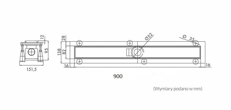 Schedpol Odpływ liniowy BASE STANDARD PLUS 90x8x9,5 cm z maskownicą STAMP OLSP90/ST -Darmowa dostawa