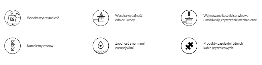 - Haczyki serwisowe (do wyciągania koszyków zabezpieczających syfonu),
