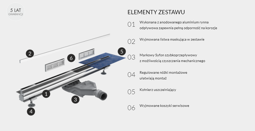 Odpływ liniowy SLIT ADVANCE to ciekawa propozycja odpływów posadzkowych stosowanych w strefach prysznicowych, których zastosowanie przyczynia się do stworzenia niebanalnej, minimalistycznej i komfortowej aranżacji w każdej łazience. Zachowanie idealnych parametrów związanych z odpływem wody, a także łatwość czyszczenia oferowanych odpływów liniowych to bardzo ważne dla użytkowników kwestie, na które firma Schedpol podczas produkcji zwróciła szczególną uwagę. Zastosowanie unikalnych technologii gwarantuje zachowanie pełnej szczelności odpływu liniowego. Stopy aluminium użyte do wytworzenia Odpływów liniowych są lekkie i wytrzymałe, a dzięki procesowi anodowania (pokrycia warstwą tlenku) wykazują odporność na działanie wody, korozję, licznych kwasów organicznych i związków azotowych. Dzięki precyzyjnie dopracowanym technologiom nie musisz się obawiać przeciekania czy pojawienia nieestetycznych plam rdzy na odpływie oraz maskownicy odpływu liniowego – produkt jest w 100% odporny na działanie wody oraz korozję. Oferowany w zestawie syfon Viega to jeden z najlepszych produktów tego typu na rynku, charakteryzuje się świetnymi parametrami w zakresie odpływu wody z prysznica. Lekkie i wytrzymałe odpływy liniowe pozwalają na stworzenie strefy prysznicowej bez instalowania standardowego brodzika. Coraz częściej właściciele mieszkań czy domów montują nowoczesne odpływy liniowe w swoich łazienkach. Dla producentów, poza właściwościami technicznymi coraz częściej bardzo ważna staje się estetyka samego produktu, gdyż większość renomowanych odpływów liniowych wyposażona jest w eleganckie maskownice, które pięknie wyglądają we wnętrzu każdej łazienki, niezależenie od stylu, w jakim została ona urządzona. Odpływ liniowy sprzedawany jest w komplecie z nowoczesnymi i wydajnymi syfonami, umożliwiającymi efektywny odpływ wody spod prysznica. Dzięki temu nie ryzykujemy zalania łazienki :) a cały zestaw odpływu wody pracuje wydajnie bez żadnych problemów. Aby zainstalować odpływ liniowy wody wystarczy wkuć się w powierzchnię podłogi lub stropu :) Warto podkreślić, że do produkcji odpływów producent wykorzystuje wyłącznie certyfikowane materiały, które są gwarancją jakości i bezpiecznego użytkowania:)