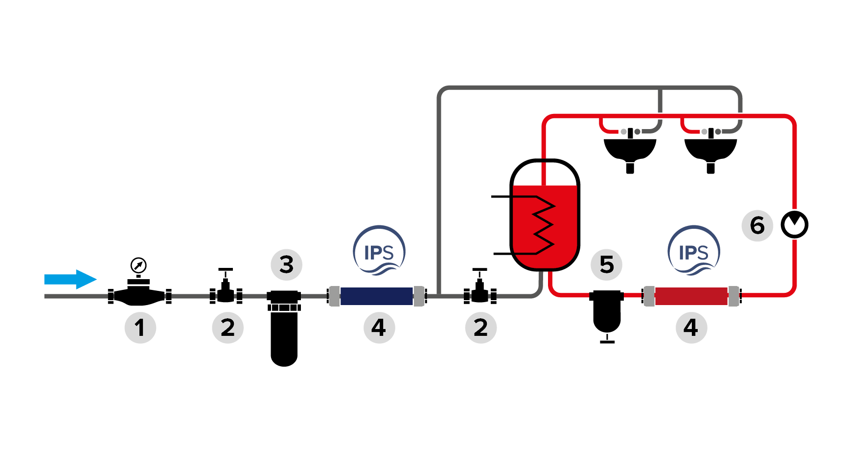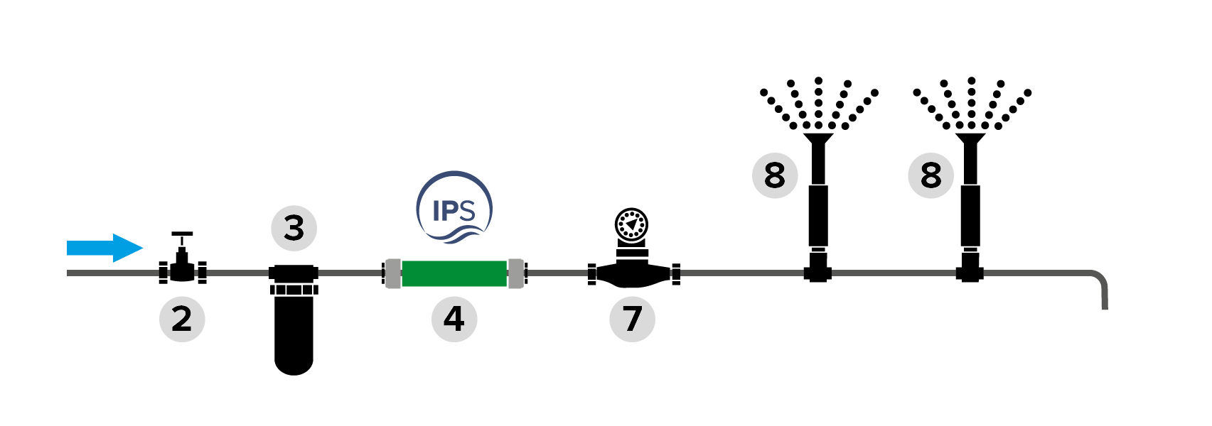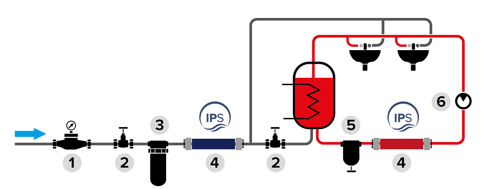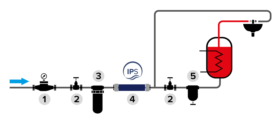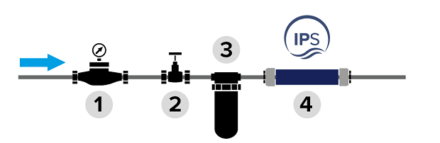 Przed urzędzeniem IPS rekomendujemy montaż mechanicznego filtra z wkładem zabezpieczającym przed drobinami minimum 50 mikronów.
