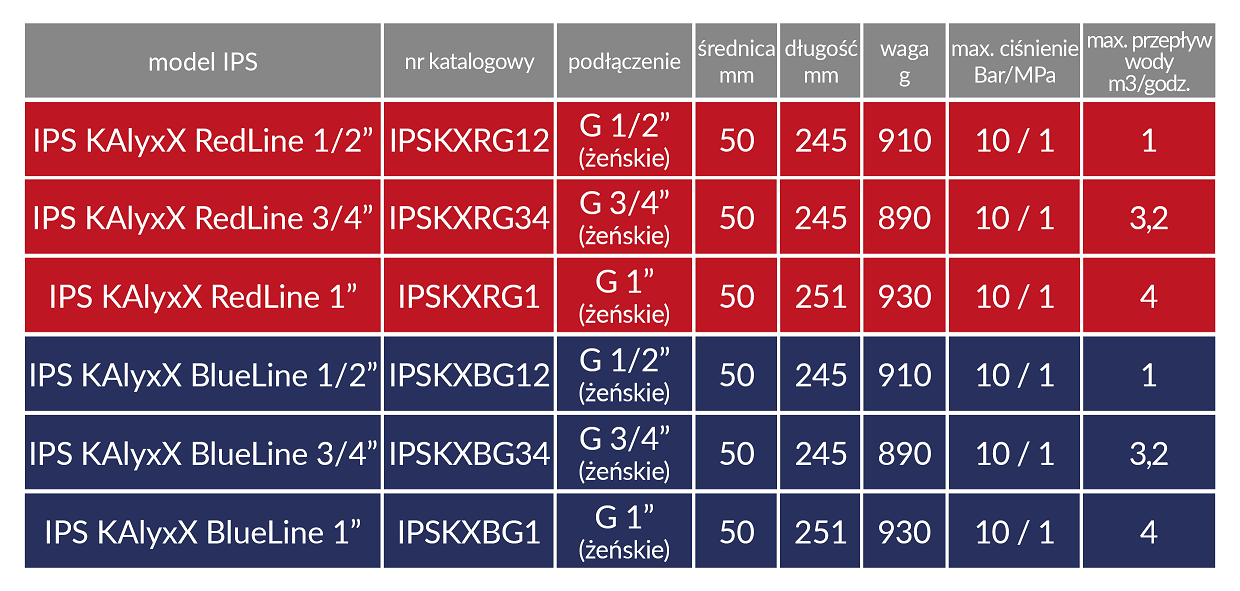TABELA ROZMIARÓW IPS KalyxX