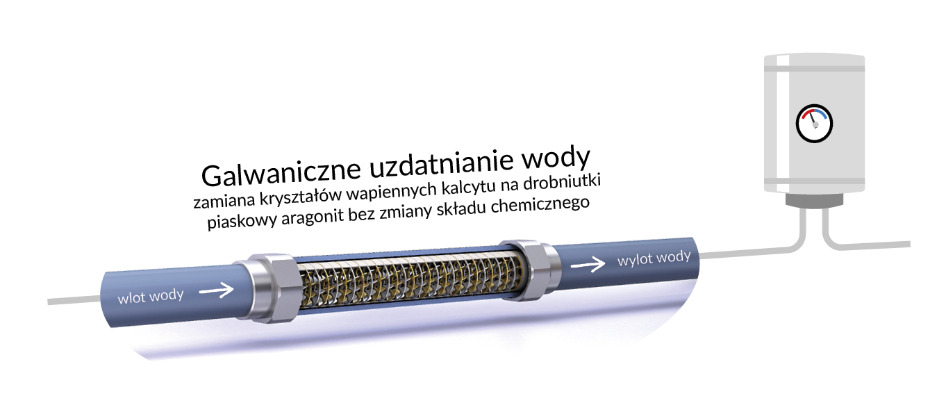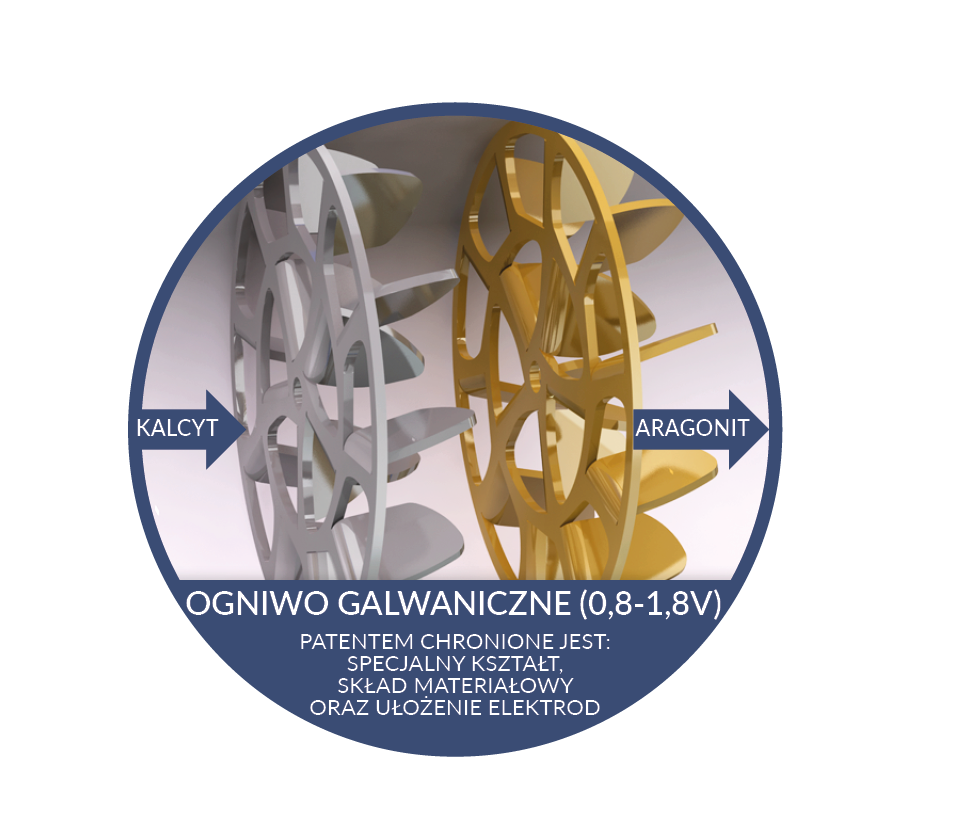 Woda przepływająca przez IPS tworzy za pomocą elektrod mokre ogniwo galwaniczne o napięciu do 4,2 - 6 V. Efektem tego minerały i sole zawarte w wodzie tracą zdolność do tworzenia osadów krystalicznych (kalcytów), nabierając struktury miękkich cząstek (aragonit) i są wypłukiwane wodą. Taka struktura jest utrzymywana do 72 godzin.